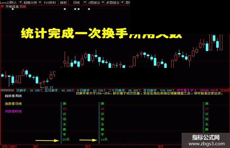IF HSL>5 AND HSL<8 THEN BEGIN DRAWTEXT(c>0 and DISPSTATUS=2,100-(sss*i),' 日换手率在5%--8%, 大于7%,常常超过10%,属于股价成交带量,表明筹码在急剧换手。发生在低位或是通过第一阻力区,很可能是强庄积极进货。'),Color00FFFF,ALIGN2;