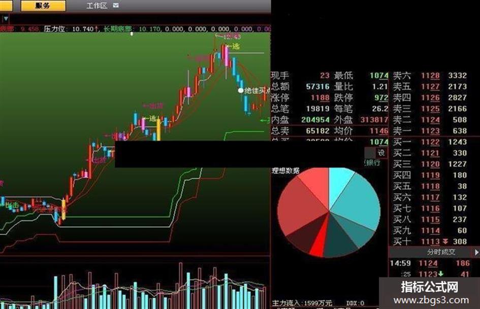 drawtext((((cross(var2c,upper) and (high < 压力一)) and ((xy - ref(xy,1)) > 0)) and (high < 支撑)),low,'←买'),colorffffff;