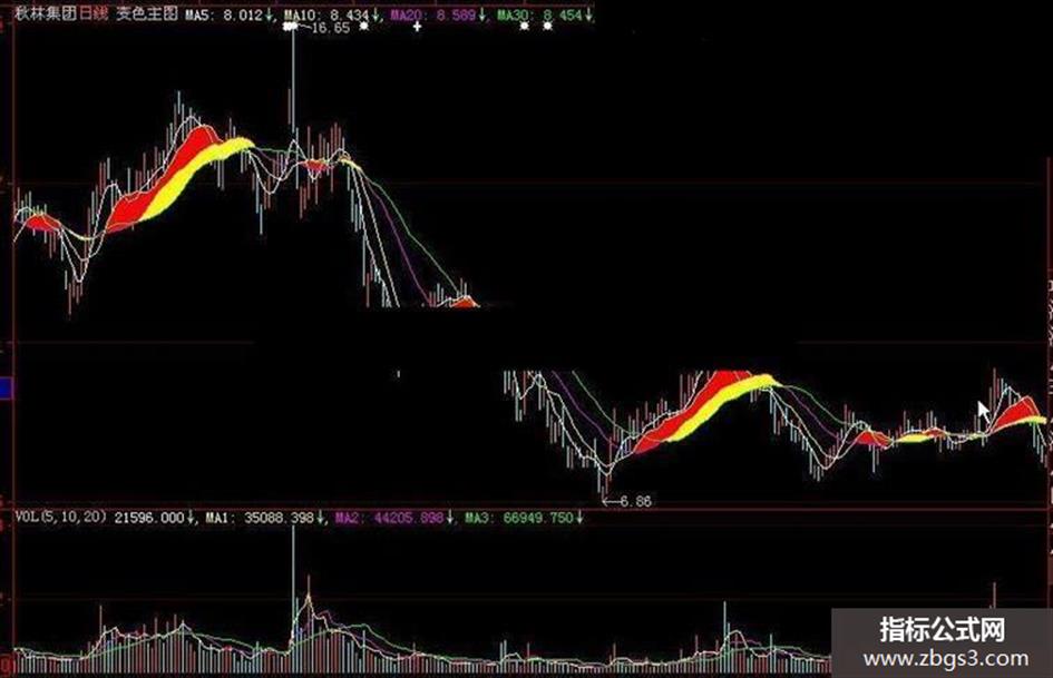 FILLRGN(MA(CLOSE,20),MA(CLOSE,30),MA(CLOSE,20)>MA(CLOSE,30),RGB(255,255,0));