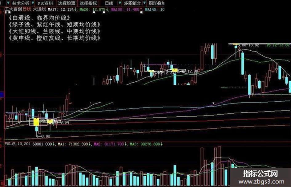 DRAWTEXTABS(5,30,'《绿子线、紫红午线、短期均价线》'),COLORWHITE,linethick3;