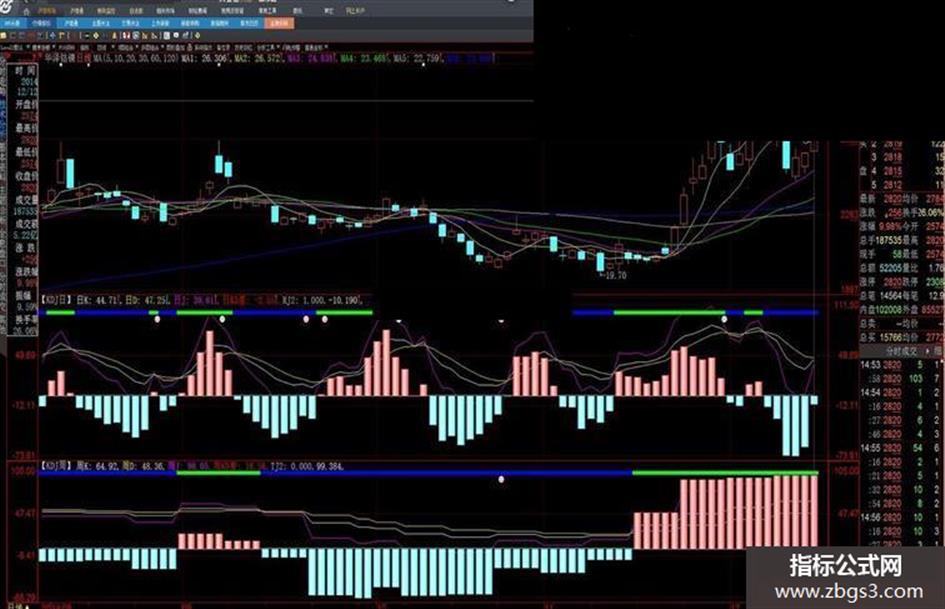 一般来说,周KDJ的上涨与下跌,与趋势相关性很大,周KDJ上涨,一波中级反弹行情会出现,周KDJ下跌,一波中级回调行情会出现,利用周KDJ看趋势,日KDJ进行买卖。不存在未来数据,只利用大智慧原有的KDJ指标。