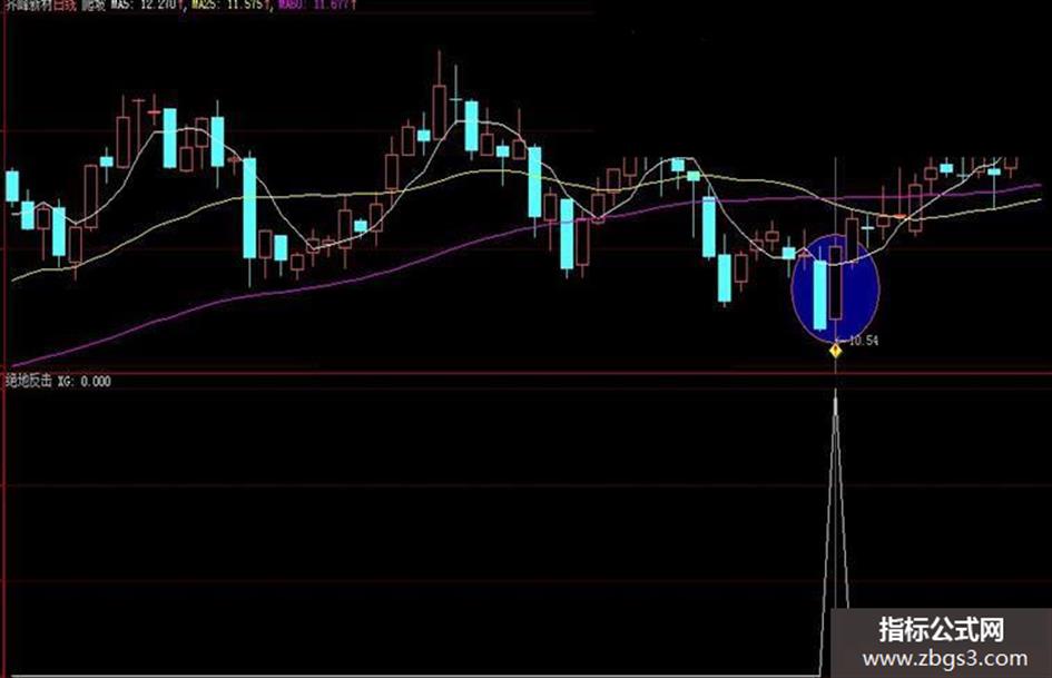 {绝地反击} TJ1:=REF(L,1)=LLV(REF(L,1),20); TJ2:=MAX(REF(O,1),REF(C,1))/MIN(REF(O,1),REF(C,1))>1.04 AND REF(C,1)<REF(O,1); TJ3:=C/REF(C,1)>1.05 AND MAX(C,O)/MIN(C,O)>1.03; XG:TJ1 AND TJ2 AND TJ3;