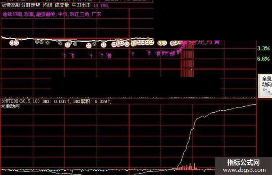 这是我根据千钧老师的作品,再结合分式资金、量能,自编的比较满意的一个指标公式,在拉升前出现的笑脸和向上的箭头越多越好,一旦出现“倚天剑”或“狂牛”,行情就来了。当然要结合k线、基本面和题材。这样胜算更大。