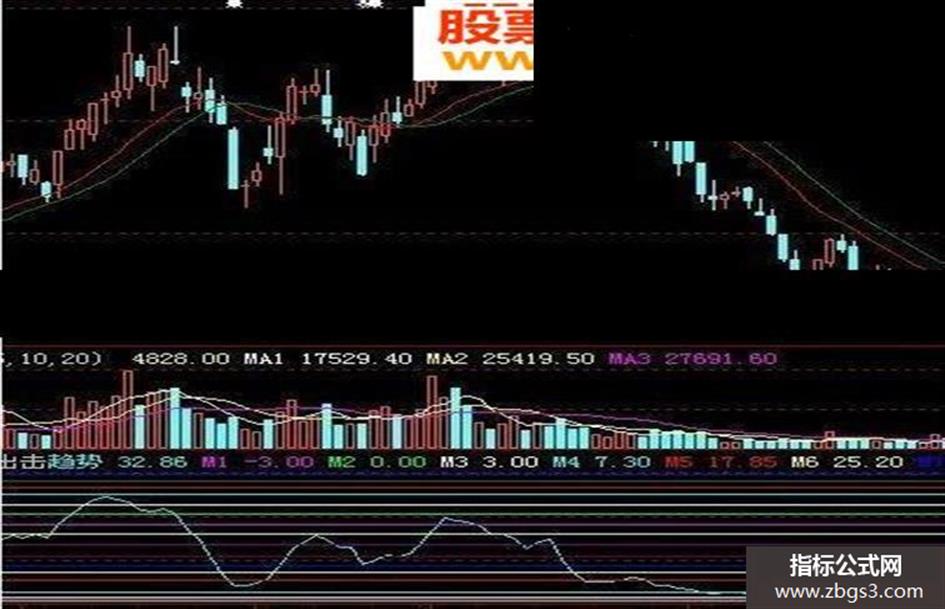 趋势:EMA(((CLOSE-V1)/(V2-V1))*(100),4),CoLorFFFF00;