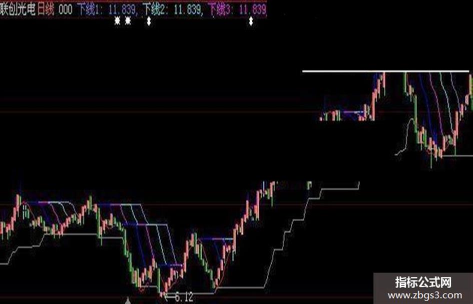 下线3:HHV(FORCAST(CLOSE,10),10),colorFF00FF;