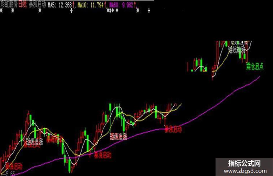 drawtext(COUNT(XG,3)=1 AND XG and c>ma(c,20),l-0.02,'暴涨启动'),colorred;