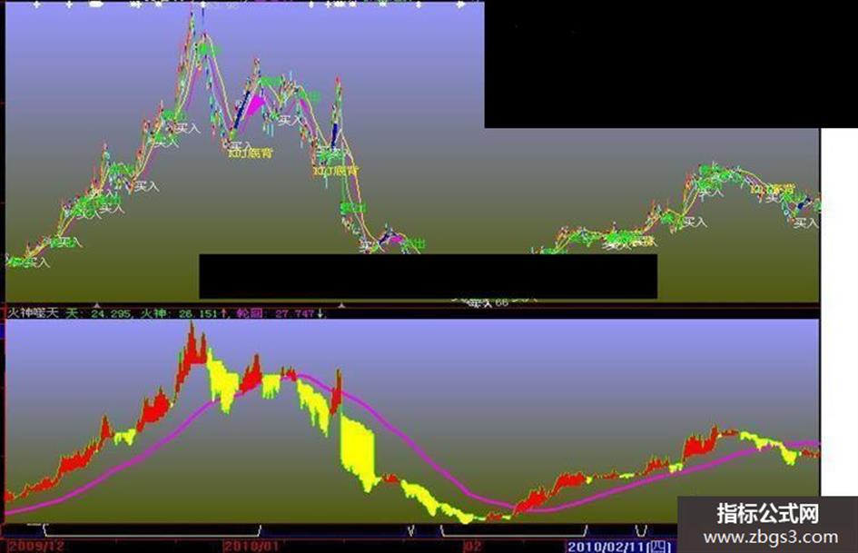 在图中对长期股价最为敏感的就是红黄两色的波段了.大家可以注意到,不管当日的股价是涨是跌,只要趋势不变,它的显示就是一种颜色,或红或黄,这也就告诉我们现在是买还是观望了,不要贪一时便宜,反被诱多,也不要一时恐慌被洗盘出局.
