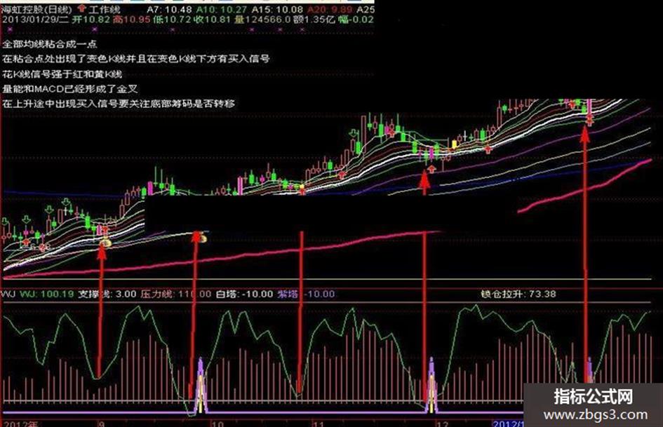 紫塔:IF(CROSS(J,1),50,-10),COLORFF6EC7,LINETHICK3;