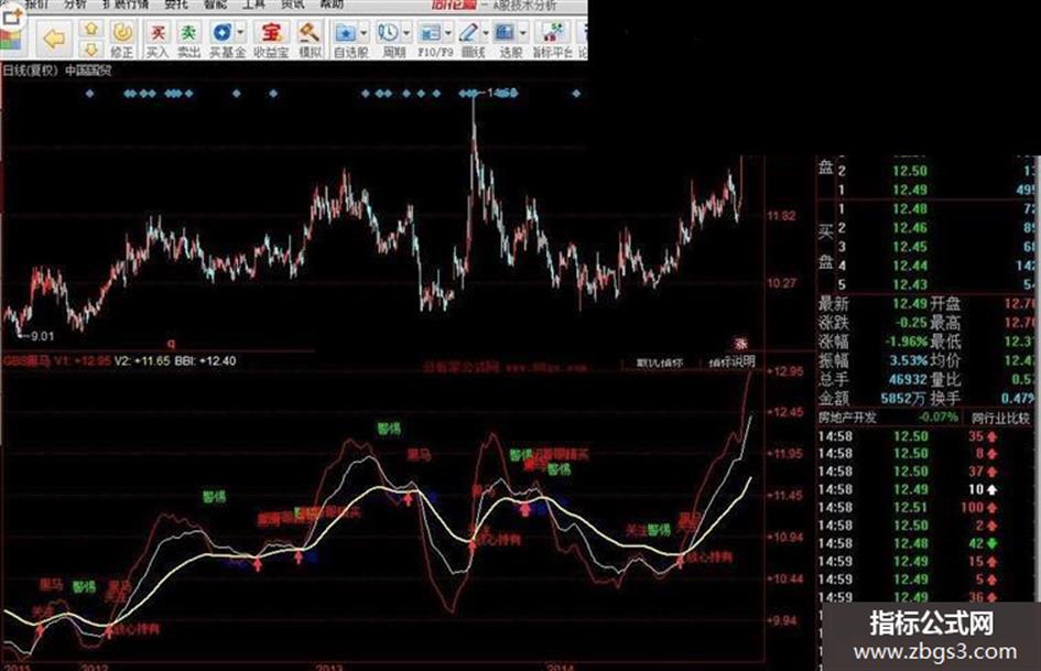DRAWTEXT(CROSS(V1,BBI) AND V1<V2,V1+0.5,'关注'),colorred;