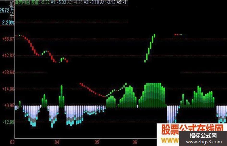a5:IF(差值>=0 ,0 ,差值*0.2 ,4 ,0),STICK,linethick5, COLORFFDDDD;a6:IF(差值<=0 ,0 ,差值*1 ,4 , 0),STICK,linethick5,colorgreen;