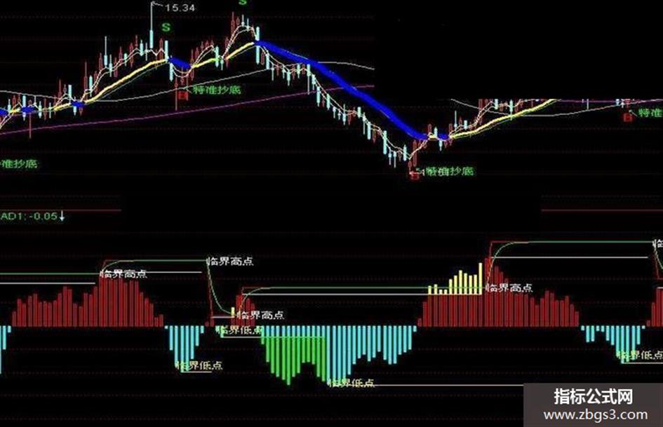关键位在见黄柱,股价位于低点,AD.AK走平,并见主图出现特准操底时刻放心买入并持股,只到主图k线出现今日最高价或见S点,卖出,一旦见AD.AK掉头向下,坚决卖出,等待下次机会,当AK.AD合一主图仍是买入可持股,即使是阴K线,AD.AK合一并掉头向下,主图是蓝线卖出,不要有侥幸心理,否则庄家吃你没商量,自己对照两图琢磨,你会有体会的。
