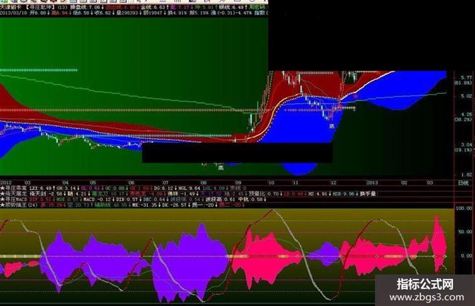 下方贴图是本人组合指标,其中的红色和灰色彩带为KD指标,本贴图的参数N的取值为24。