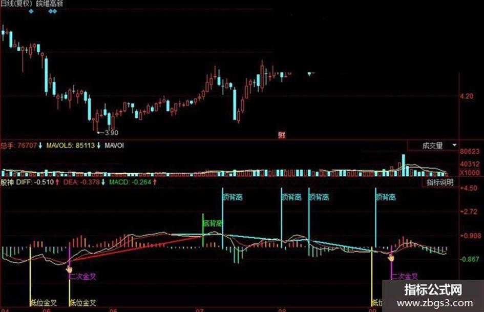 作者在MACD指标基础上加了背离、低位金叉、二次金叉提示,方便用户查看。