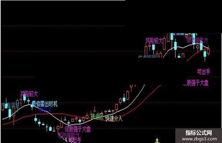 DRAWTEXT(FILTER(CLOSE/REF(CLOSE,1)>INDEXC/REF(INDEXC,1),30),L*0.95,'该股强于大盘'),COLORFF00FF;
