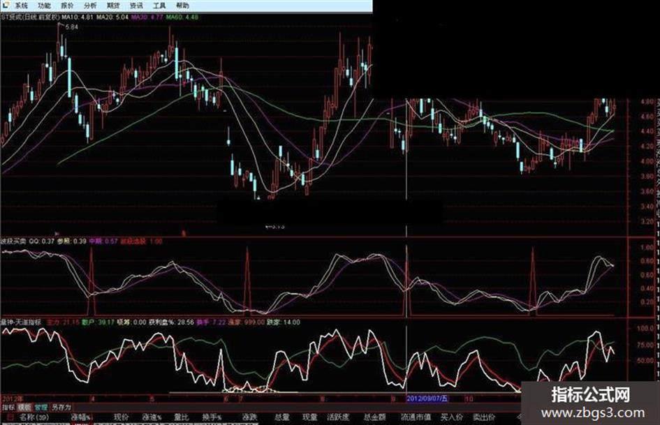 说明:指标右侧底部不断抬高,大势见底,进场。顶部不断降低,走势将趋弱,可减仓-卖出。同时应注意低位短期与中长期线金叉进,高位死叉出。