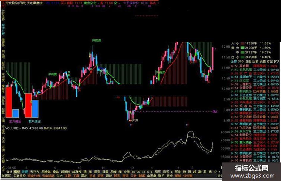 DRAWTEXT_FIX(CURRBARSCOUNT=1,0.015,1,0,'主力进出'),COLORMAGENTA;