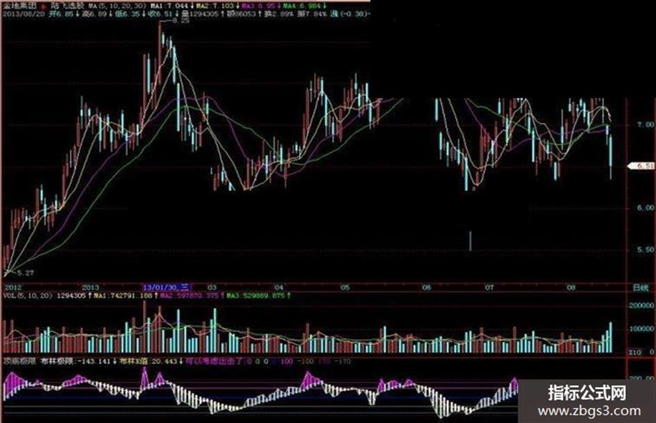 STICKLINE(布林极限>=布林K值,布林极限,布林K值,6,0);