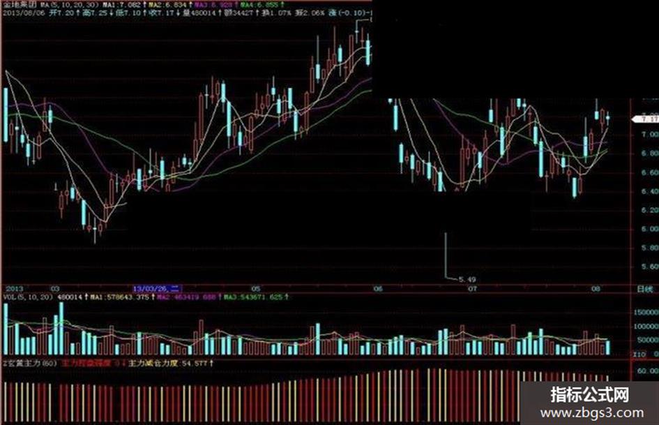主力控盘强度:IF( Var5<70 and CLOSE>OPEN,Var5,0) ,STICK,LINETHICK2,COLOR0000FF;