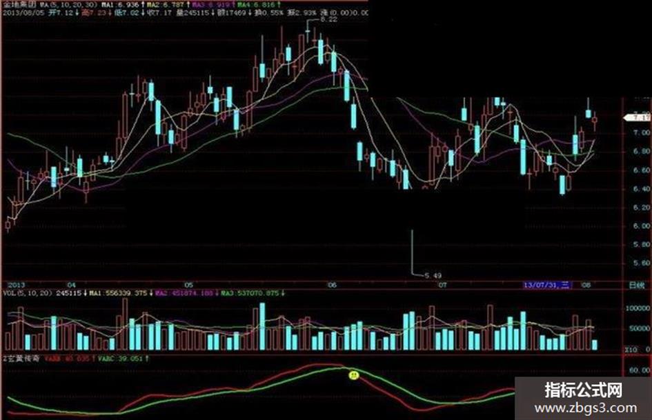VarC:SMA(VarB,5,1)linethick2,colorgreen;