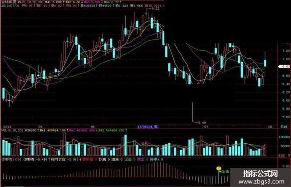出击:if(买>0,5,0) STICK,COLORGREEN;