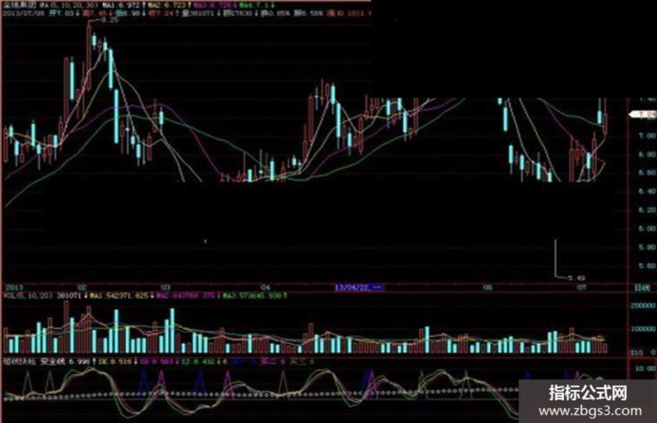 买三: IF(CROSS(SK,SD) AND SK>安全线,9.8,6);