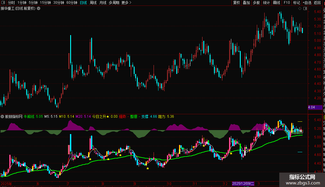1. 多周期均线系统:显示5日、10日、20日均线及一条30日与72日组合的“牛熊线”,用于判断不同级别的趋势方向。