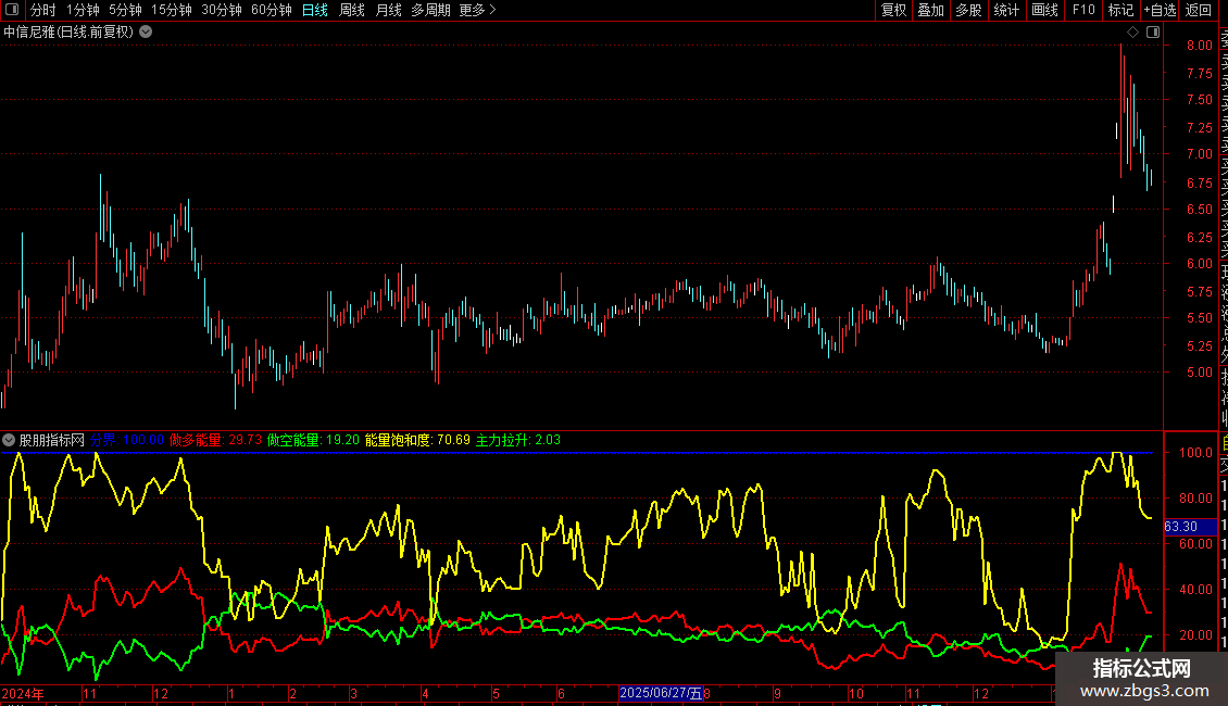 指标包含多个子指标,用于分析市场多空能量和主力行为。