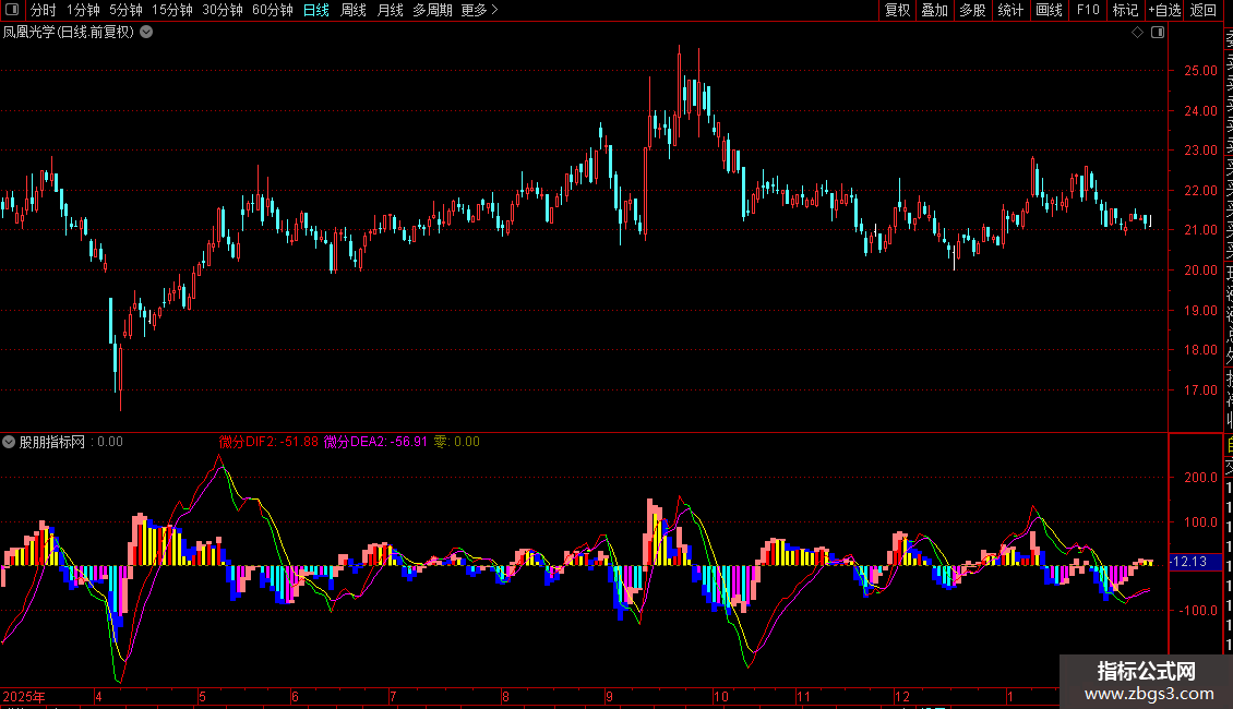趋势判断:关注“微分DIF”与“微分DEA”的金叉死叉,以及MACD2柱状图在零轴上下和颜色的变化。
