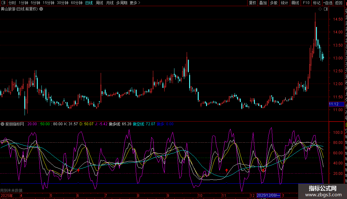3. 动量确认:整合了标准的KDJ指标(K、D、J线),用于衡量价格动量和寻找背离。