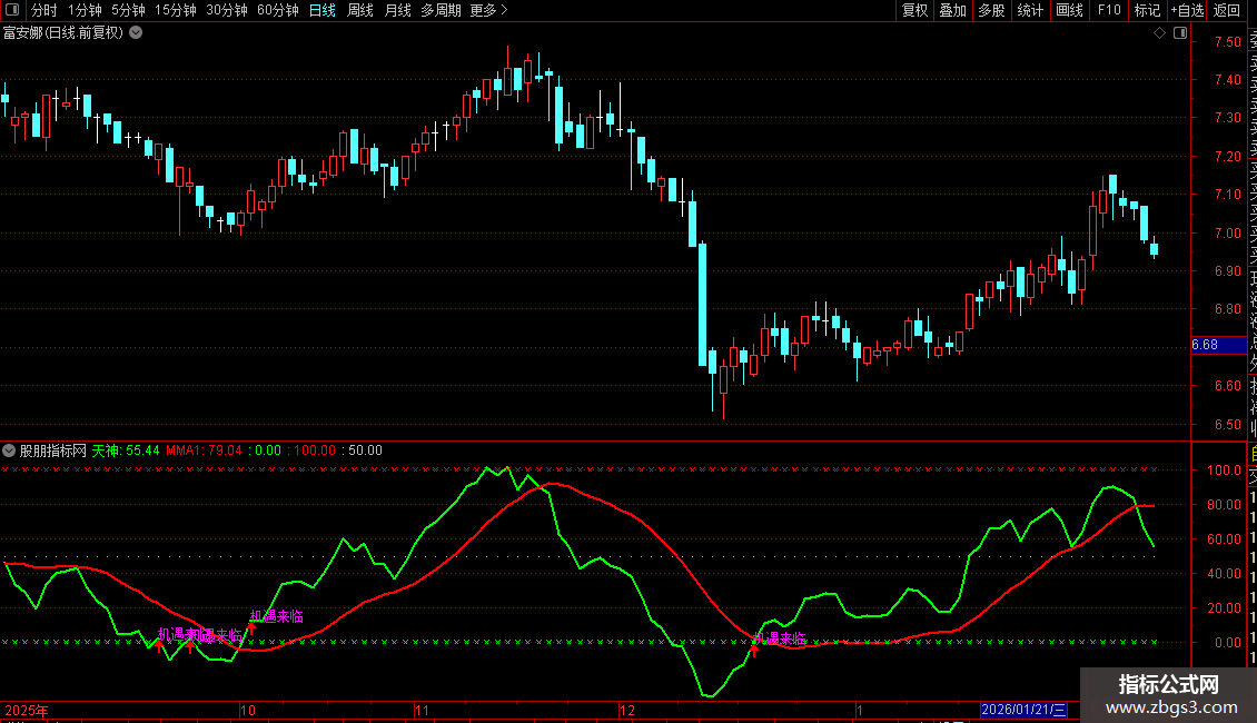 - 天神线:综合多个子指标计算出的趋势线,反映市场整体动能。