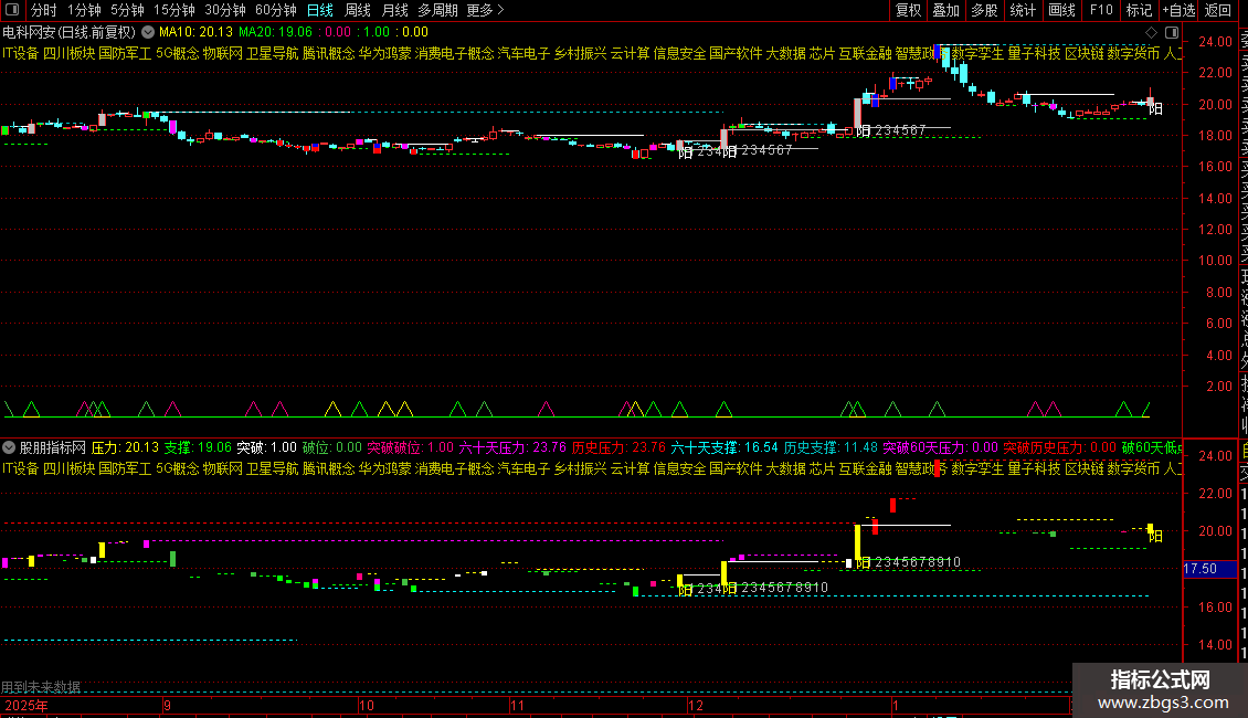 这是一个综合性的技术分析指标,主要用于识别趋势、支撑压力位和关键K线形态。