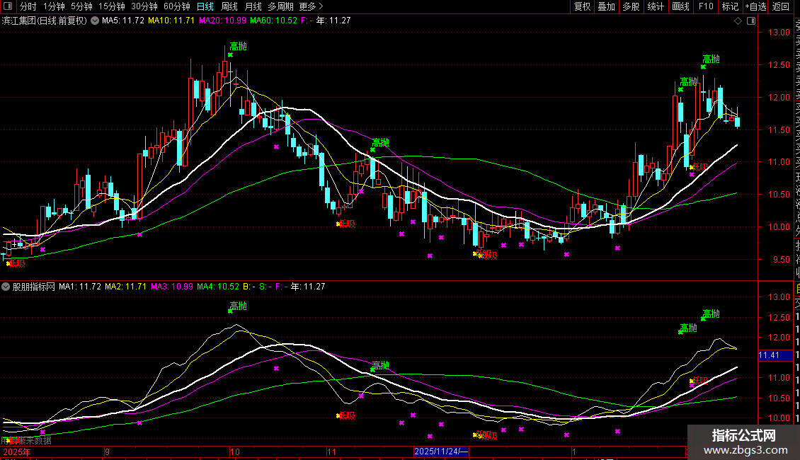 该指标是一个综合性的技术分析工具,结合了多种均线、价格位置、摆动指标和转折点信号。其核心用法如下: