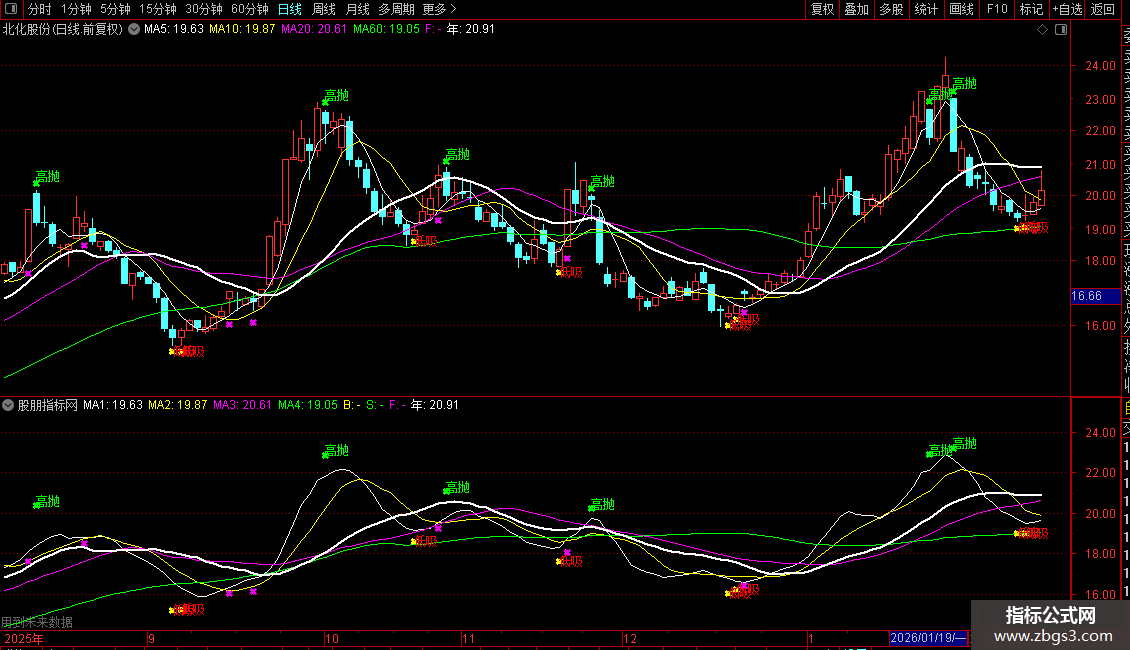 该指标信号源复杂,尤其大量依赖未来函数`ZIG`和`TROUGHBARS`。由这些函数产生的“低吸”、“高抛”信号点会在股价后续走势发生变化后,发生位置移动或消失,不可用于实际交易的回测或决策,仅可作为历史走势的滞后分析参考。