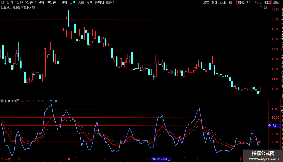 - 彩色标记线:当J值低于10或高于80时,以黄色高亮显示,提示超卖或超买区域。