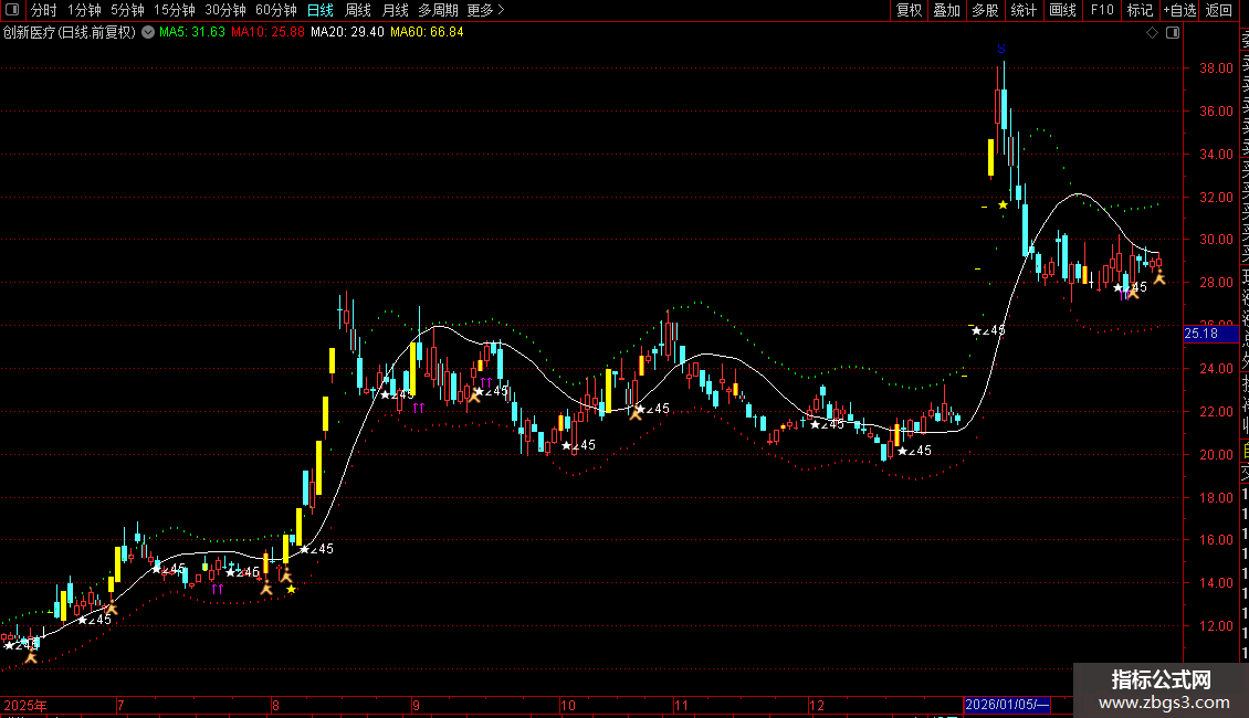 1. 趋势与通道:通过“趋线”和“短趋/中趋”判断价格中期趋势,并绘制“超买”、“超卖”两条动态通道线来提示潜在的压力与支撑位。