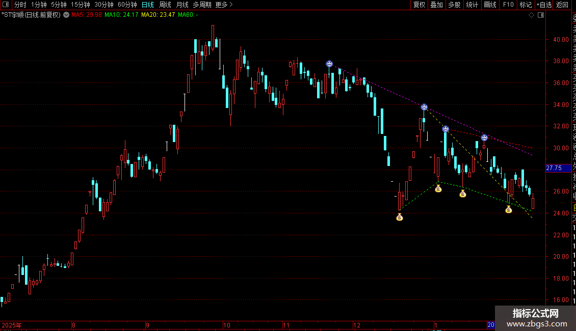 指标用于识别并标记股价的阶段性高点和低点,并绘制相应的支撑与压力线。
