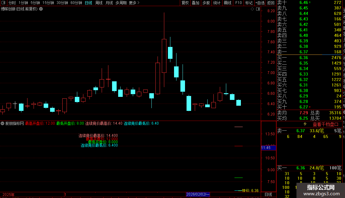 DRAWTEXT_FIX(1,0.45,0.25,1,STRCAT('连续竞价最低价: ',CON2STR(连续竞价最低价,3))),COLORCYAN;