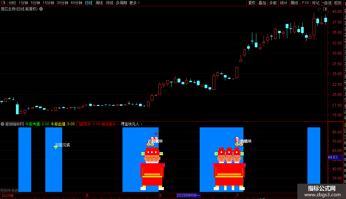 5. 状元郎:为“牛股出炉”信号匹配复杂的K线下方柱状图标和“状元人”图标,进行视觉强化。