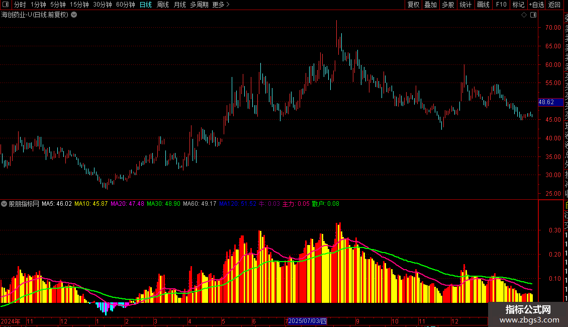 4. 增加“主力”(21日)与“散户”(60日)两条对“牛”线的平滑线,用于观察其短期与中期动向。