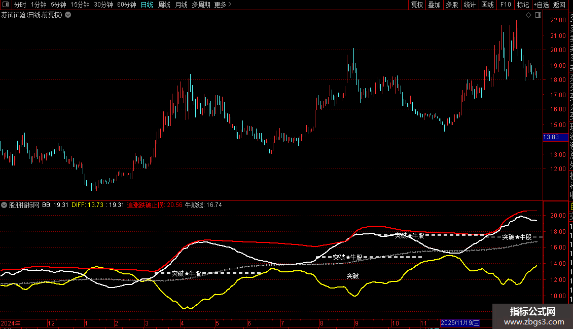 2. 牛熊线以圆圈点显示,便于识别。