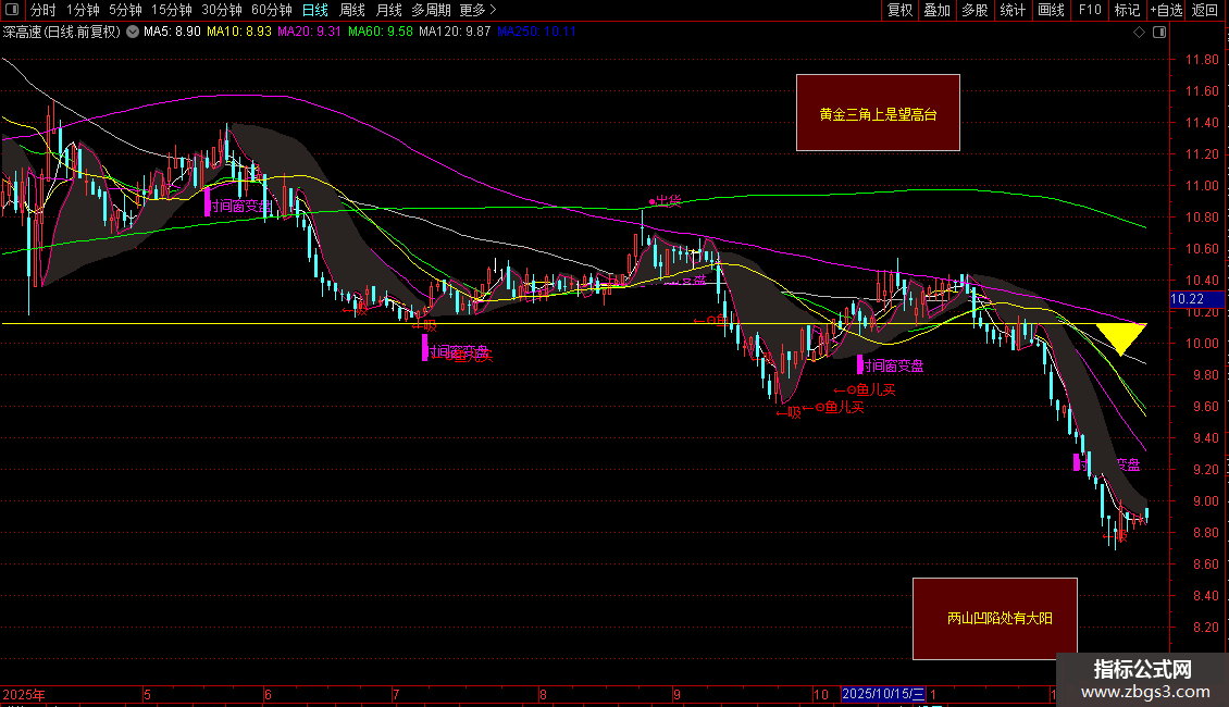 DRAWTEXT_FIX(1,0.70,0.10,0,'黄金三角上是望高台'),COLORYELLOW;