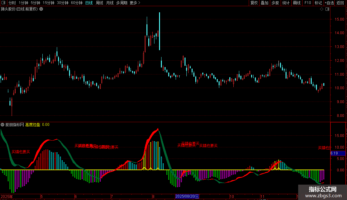 DRAWTEXT(指标王,L,'买错也要买'),COLORRED;
