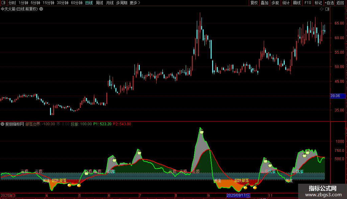 DRAWTEXT(CROSS(-100,CZ),-120,'超跌部落'),COLORYELLOW;