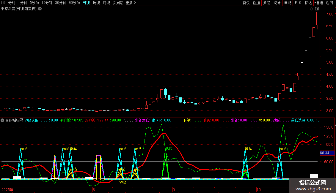 准备:(IF(((动向趋势线 > 88) AND (神偷线 < 5.8)),68,0)),LINETHICK1,COLORFF00FF;