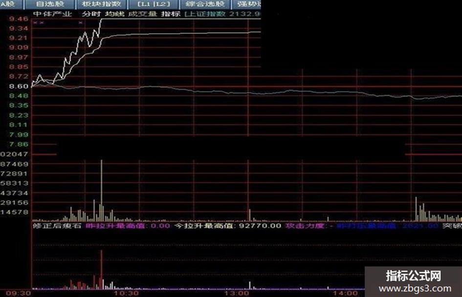 这是根据瘦石头美女老师的瘦石分时量能改编的,首先要感谢瘦石头老师给了基础性思路,在此基础上做了简单完善,效果还不错。注意盘中出现虚线量柱的要引起注意了,嘿嘿。出现虚线量柱的表明有资金在试盘拉升了,但不是所有的都会拉上去,还要结合盘口别的指标综合判断!!!