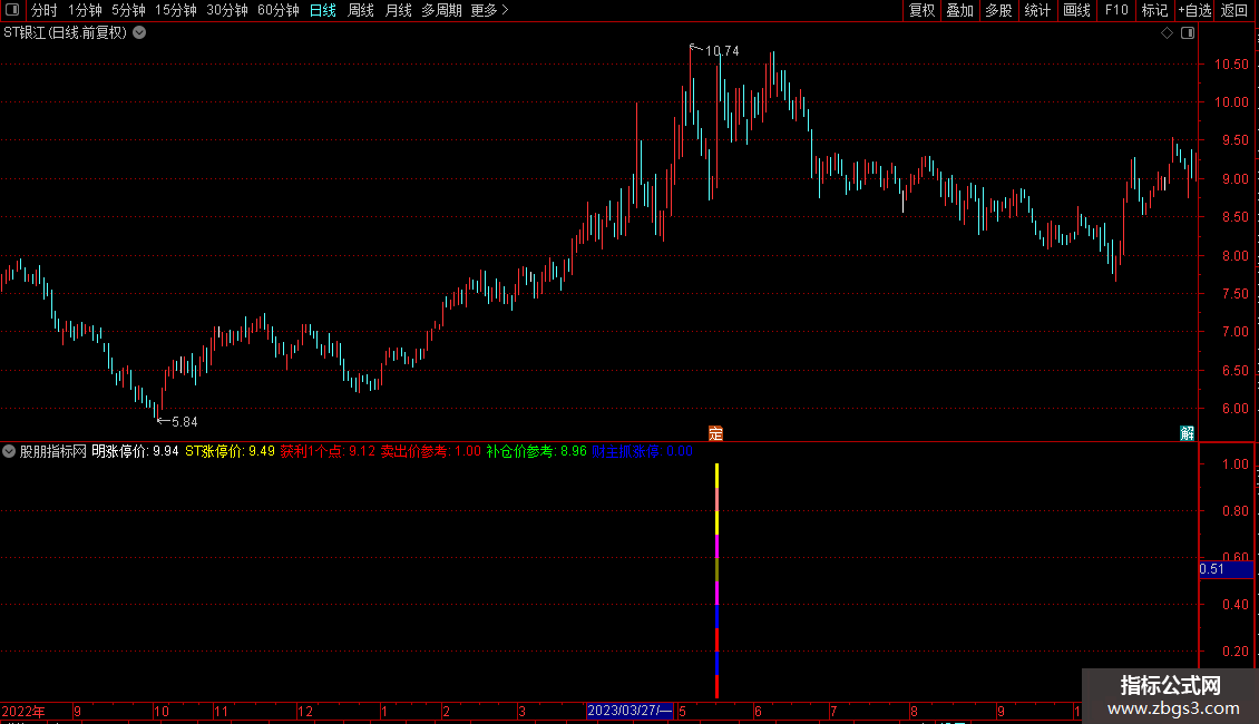 STICKLINE(财主抓涨停,0.6,1,2,0),COLORMAGENTA;