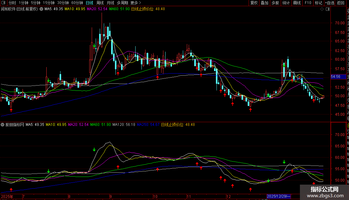 1. 主图显示6条均线:5日、10日、20日、60日、120日、250日收盘价均线。