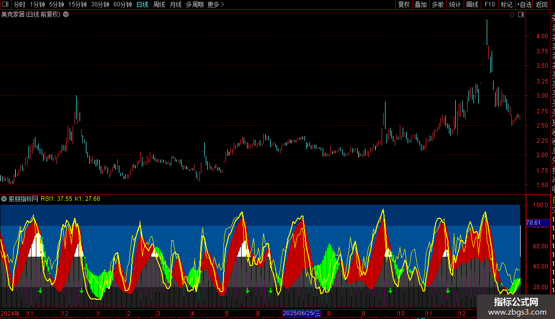 指标是一个复合型技术分析工具,融合了DMI、KDJ和RSI等多个经典指标,并进行了可视化增强。