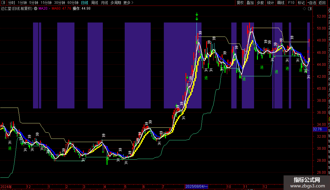 界与指导线:由4、6、12、24日EMA共同计算得出的两条快慢线,用于判断短期波动。