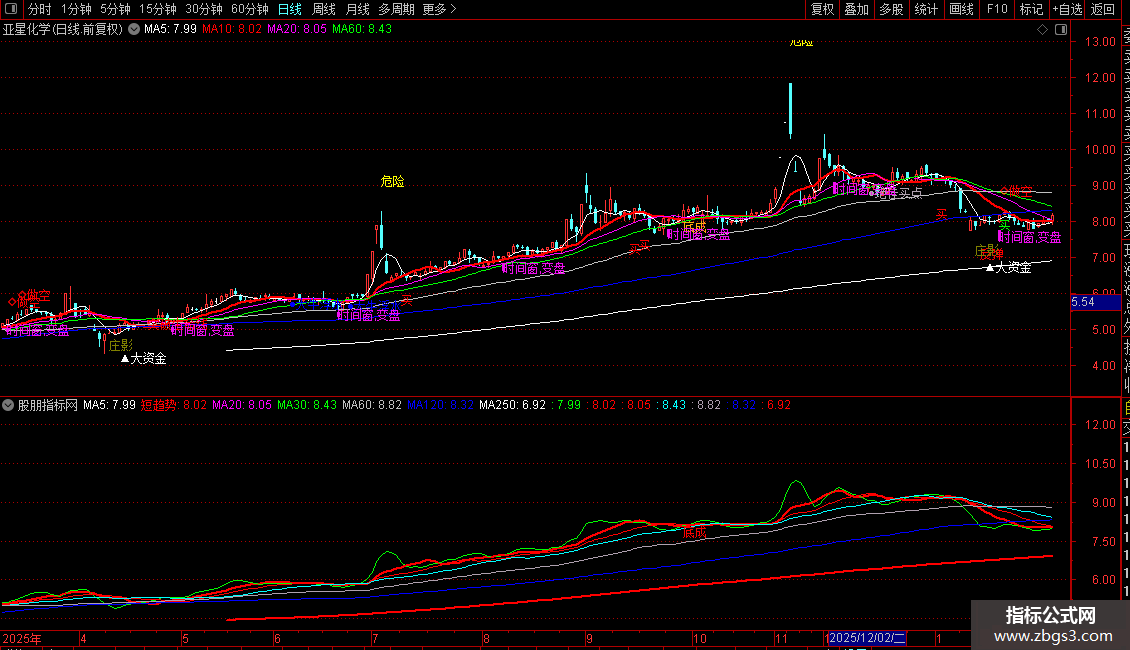 MA20、MA30、MA60、MA120、MA250:分别为20、30、60、120、250日收盘价均线,构成中长期均线系统。